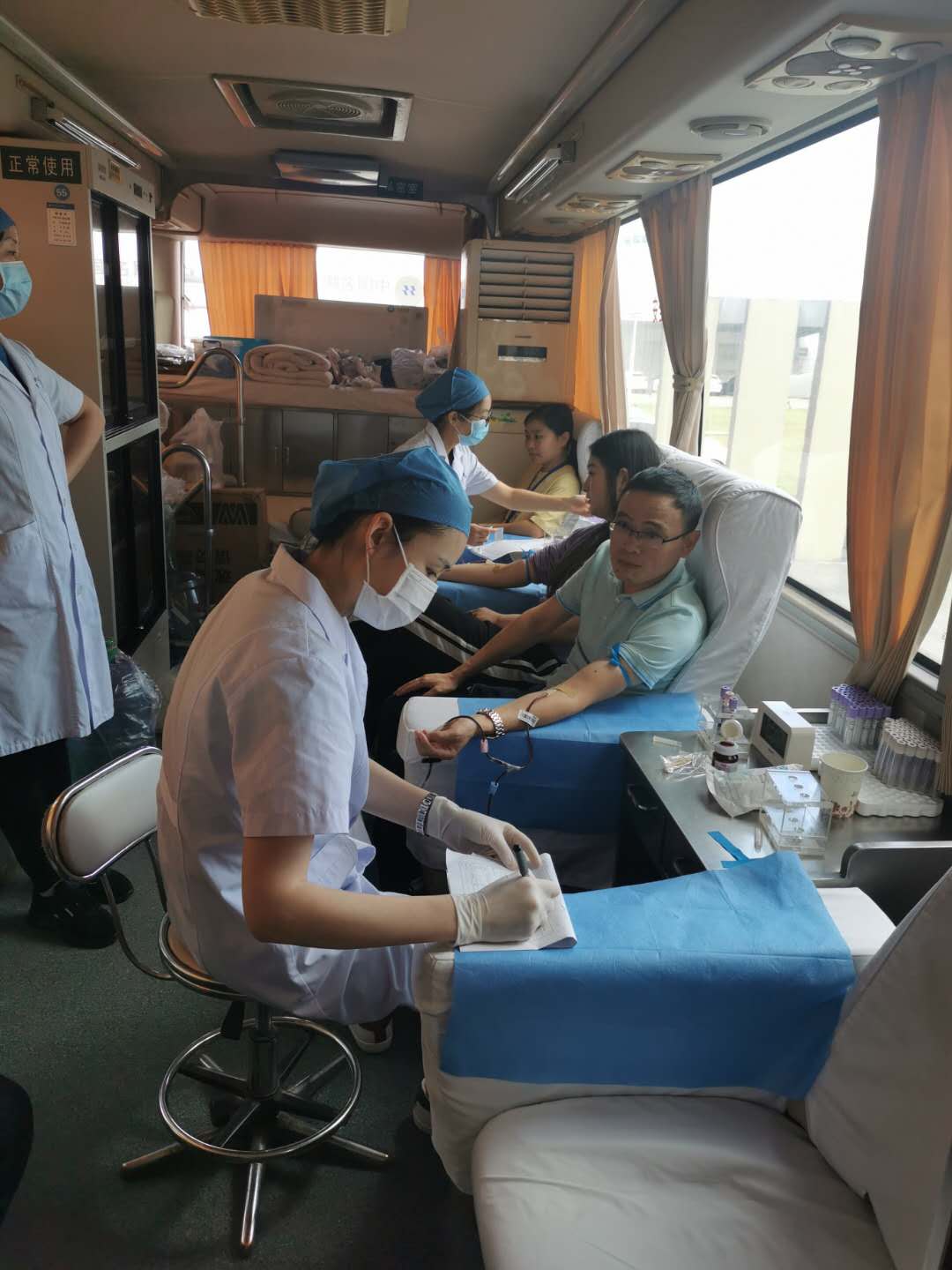活動現(xiàn)場,通過初檢的人員依次排隊獻血